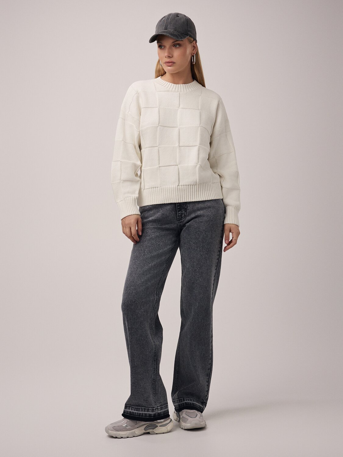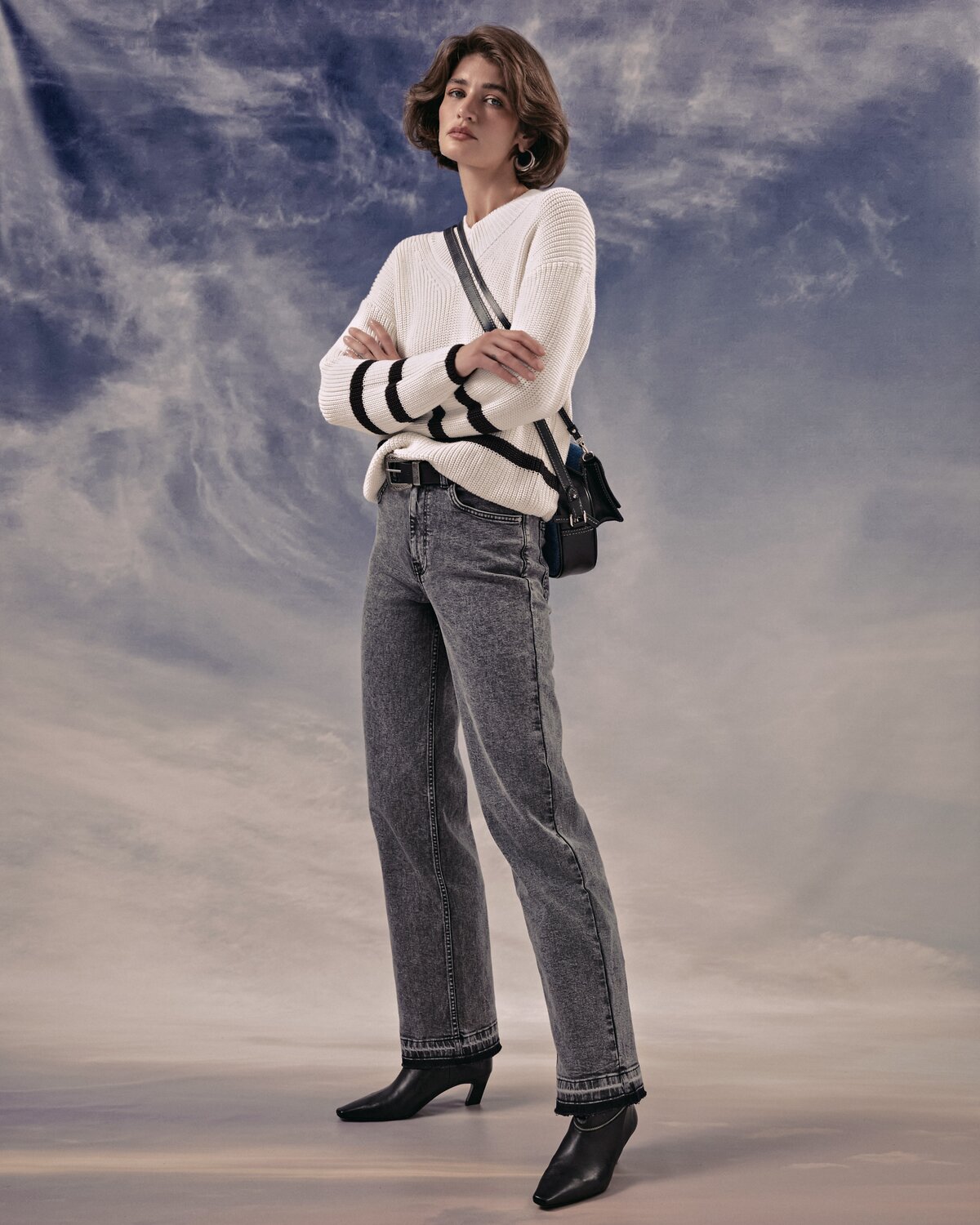 "Джинсы нового сезона с той самой правильной посадкой на бедрах, которые благодаря крою wide leg сделают ваши ноги бесконечно длинными.