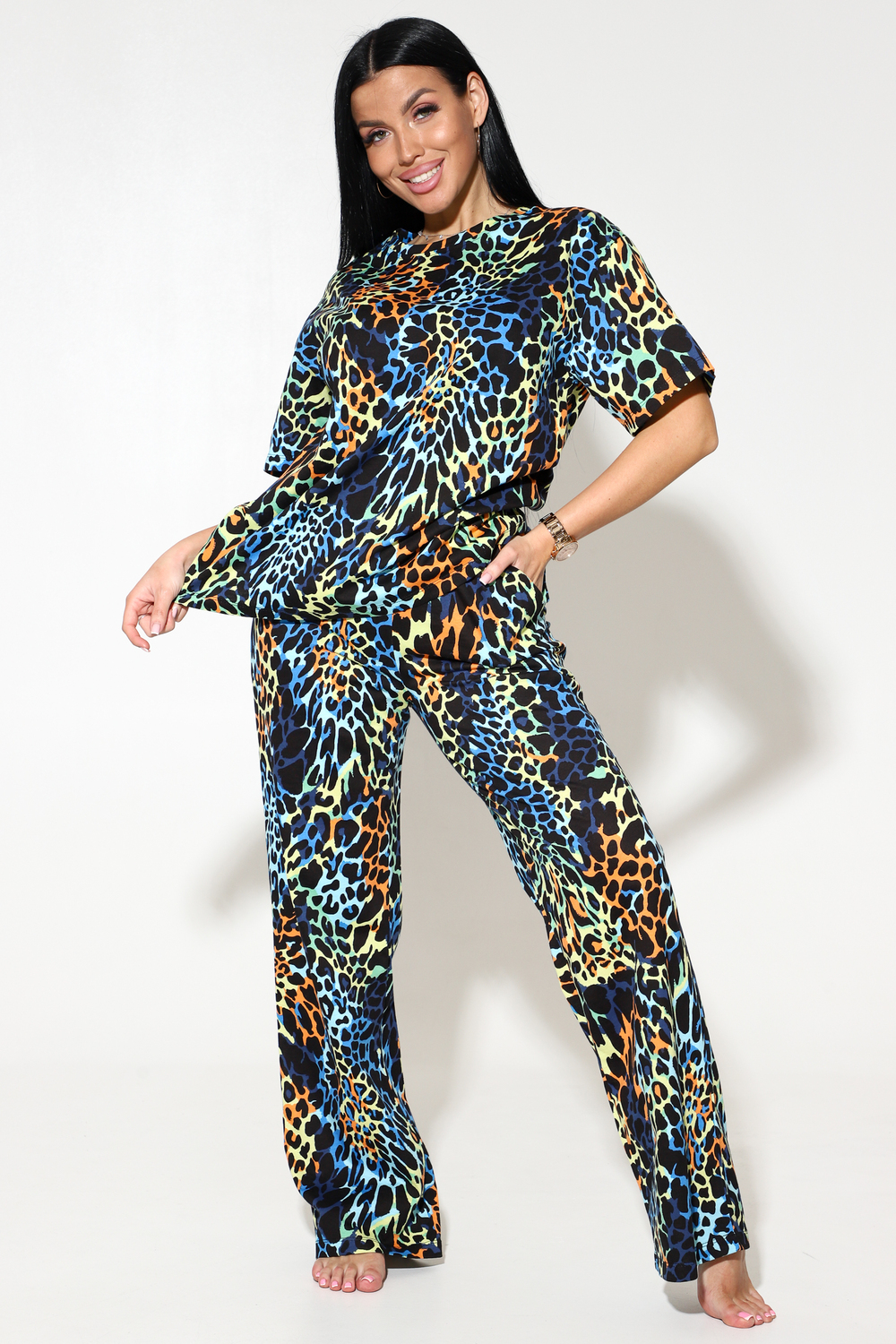 Представляем вам уютный и стильный костюм домашней одежды от бренда DANi.TEX BRAND - идеальный выбор для комфортного отдыха и прогулок. Изготовленный из 100% хлопка, (кулирка) , этот костюм состоит из футболки с коротким рукавом и брюк, что делает его идеальным вариантом для летних дней или теплых вечеров. Футболка имеет втачной рукав и округлый вырез горловины. Брюки прямые с широким притачным поясом и карманами в боковых швах. Особенностью этого костюма является яркий и красочный принт, который обязательно понравится как детям, так и взрослым.