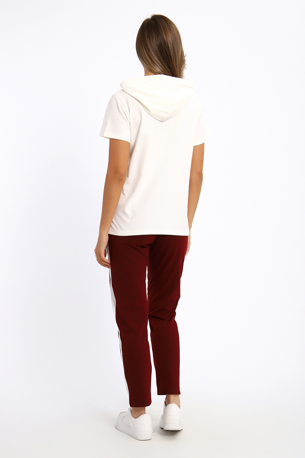 Удобный, женственный трикотажный костюм со спортивной ноткой подарит вам чувство комфорта и позволит выглядеть сногсшибательно в любой ситуации! Костюм прекрасно подойдет для занятий спортом, пробежек или прогулок! Кофта белого цвета, с надписью латинскими буквами в цвет брюк, имеет капюшон, способный защитить волосы от солнечных лучей, ветра или дождя. Объем капюшона регулирует изящный шнурок. На брюках имеются лампасы белого цвета, гармонирующие с цветом кофты. Цвет: бордовый;коричневый;черный; Материал: кулирка с лайкрой; Состав: 92% хлопок, 8% лайкра.