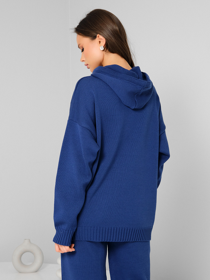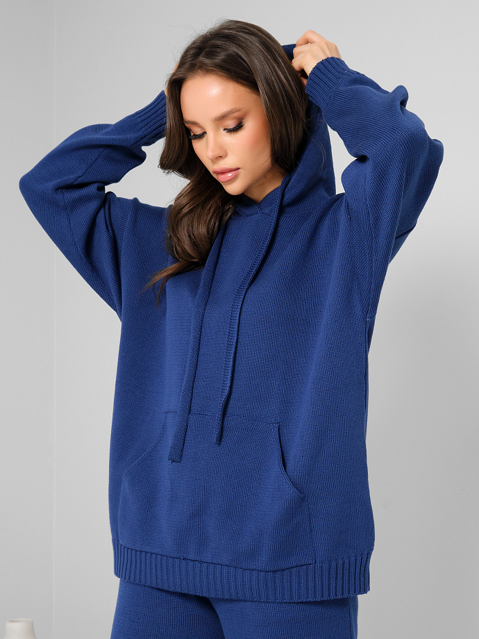 Пояс с резиной и кулисой, в которую вставлен вязаный шнурок.