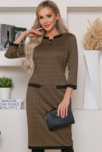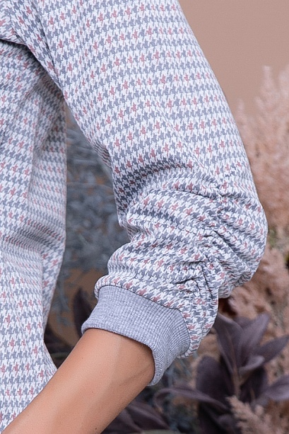 Джемпер из жаккардового трикотажного  полотна в гусиную лапку с отделкой трикотажной рибаной.