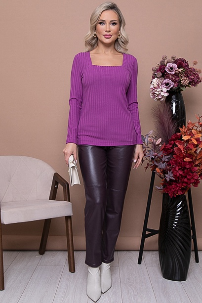 Джемпер из вискозного трикотажного полотна лапша,с горловиной-каре.