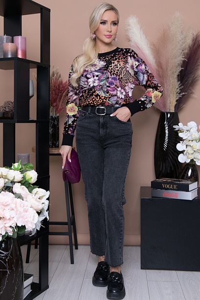 Джемпер из трикотажного полотна джерси свободного силуэта с отделкой трикотажной рибаной.