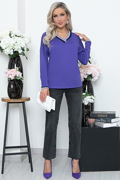 * Джемпер свободного силуэта из трикотажного полотна джерси  с V-образным вырезом горловины. Манжеты и рукава обработаны трикотажными подвязами.