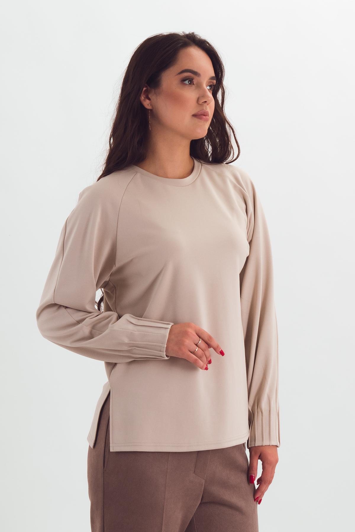 Описание: Стильный джемпер прямого силуэта обеспечит вам комфорт в движении, благодаоря разрезам по боковым швам изделиия. А защипы по низу рукава-ренглан - добавят в ваш образ оригинальности.