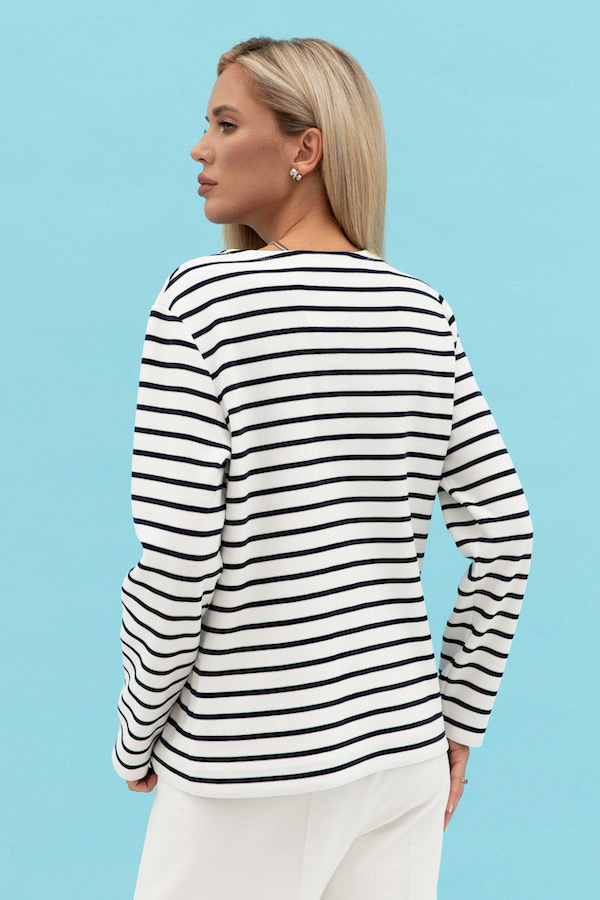 Джемпер свободного силуэта из эластичного полотна. Круглый вырез горловины, втачной длинный рукав.