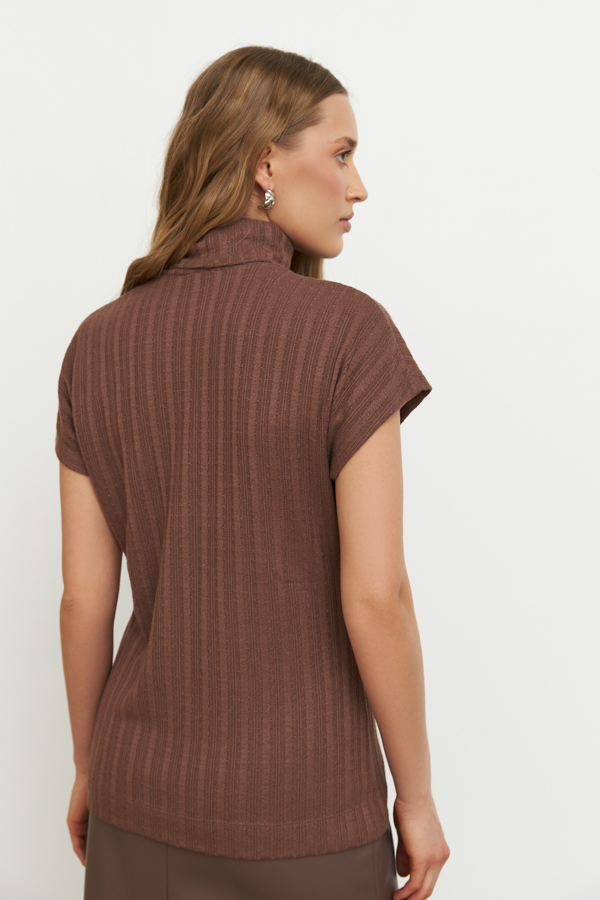 Джемпер свободного силуэта из фактурного эластичного полотна. Цельнокроеный короткий рукав. Воротник-стойка с отворотом. Женский джемпер стал незаменимой и популярной разновидностью одежды, которая может применяться буквально во всех случаях жизни.
