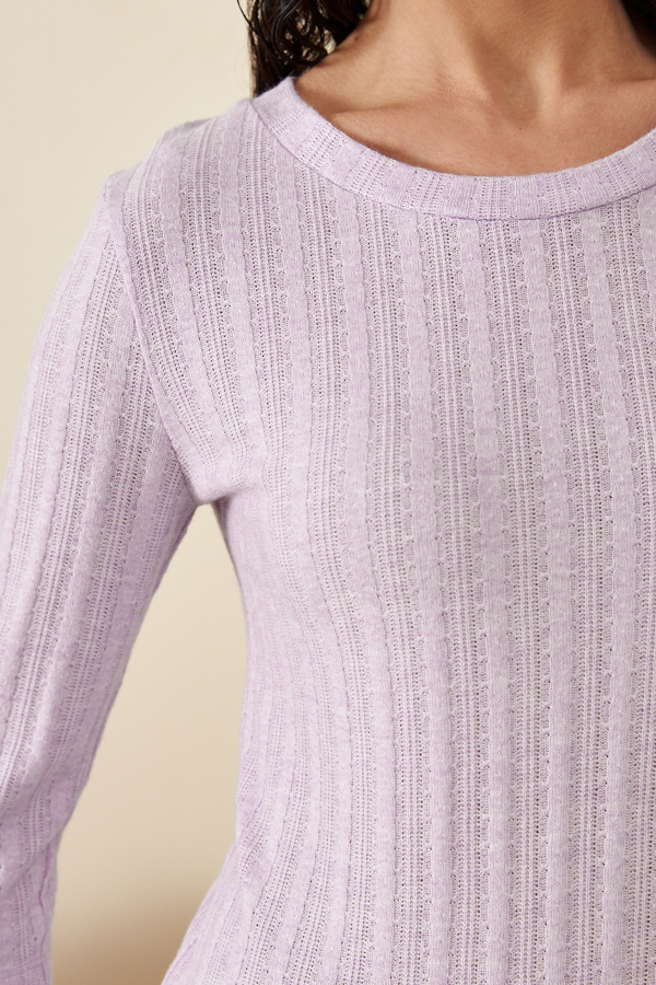 Джемпер прилегающего силуэта из фактурного эластичного полотна. Втачной рукав 3/4. Круглый вырез горловины оформлен бейкой.