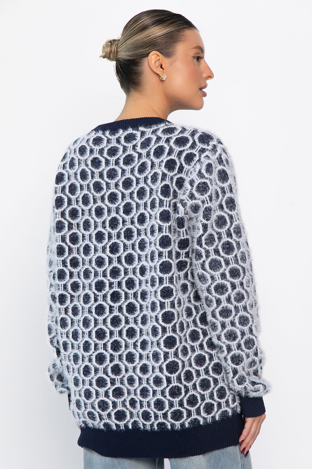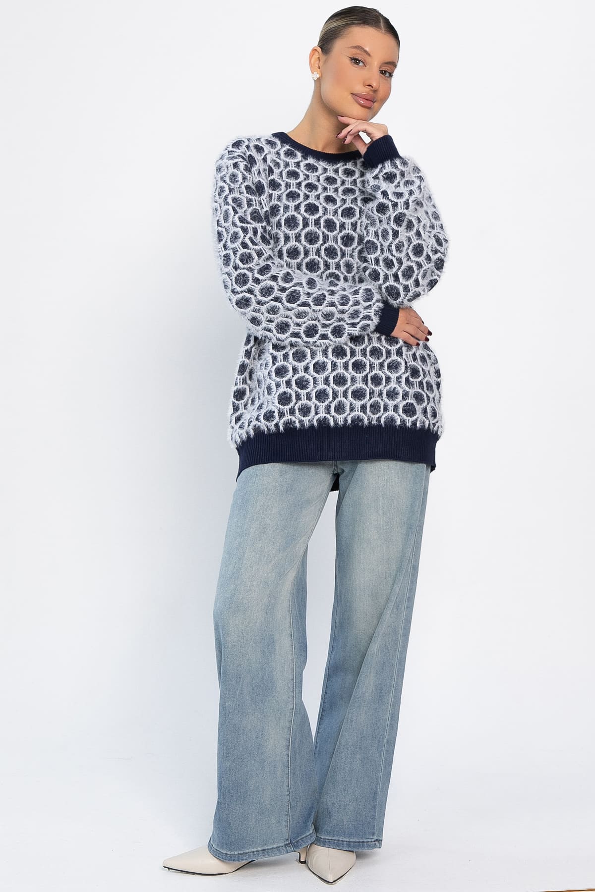 Универсальный джемпер — идеальный выбор для тех, кто ценит комфорт и стиль в одном изделии. Благодаря эластичному материалу и продуманному крою, джемпер отлично сидит на фигурах разных форм в диапазоне размеров 44-50. Мягкая ткань обеспечивает приятные ощущения на коже, а универсальный дизайн легко комбинируется с любой одеждой — от повседневных образов до более нарядных.