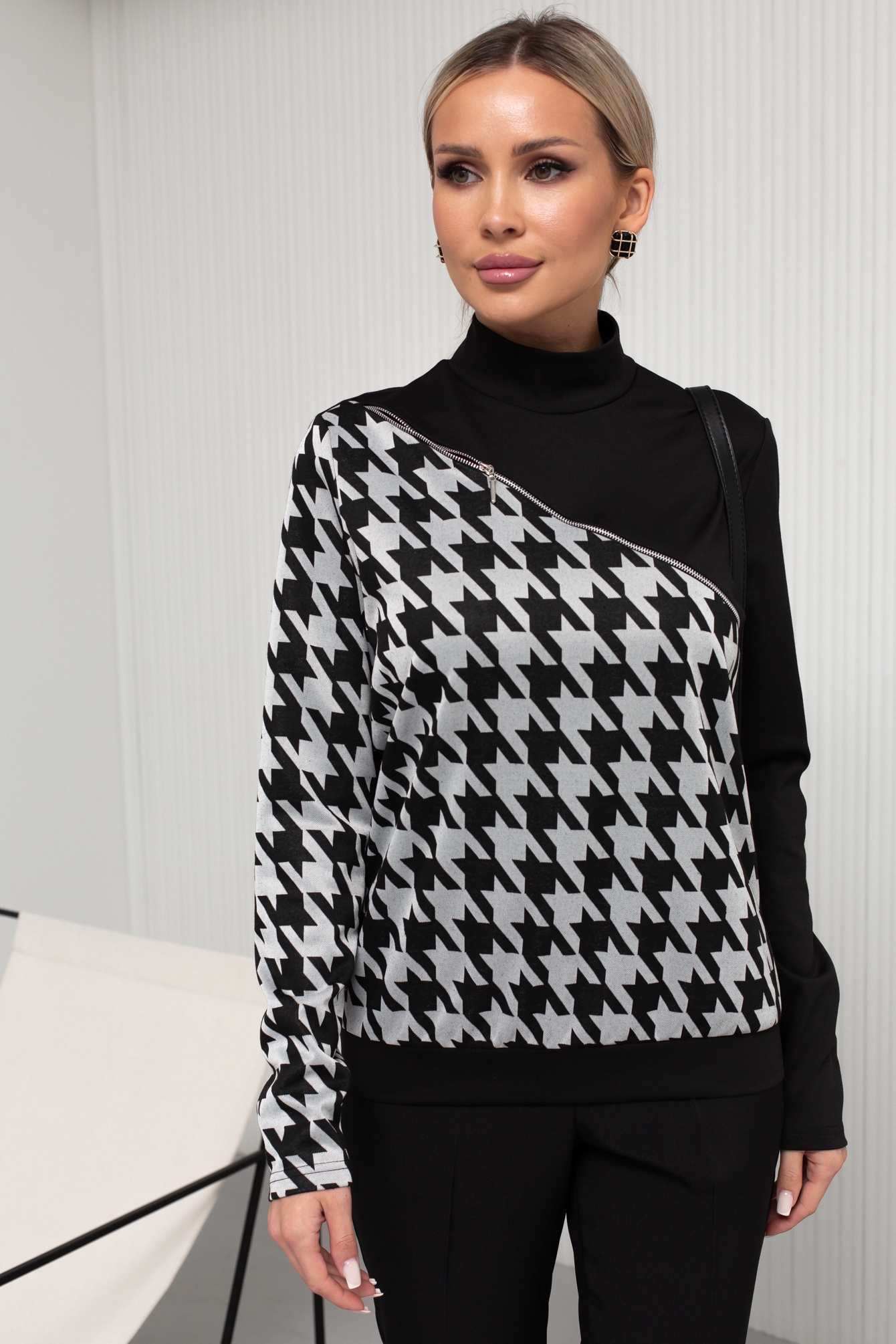 Комфортный джемпер прямого силуэта из трикотажного полотна. Длинный втачной рукав со спущенным плечом. Горловина оформлена воротником - стойка. По спинке застежка на потайную молнию. Перед декорирован молнией в шве. По низу притачная манжета.