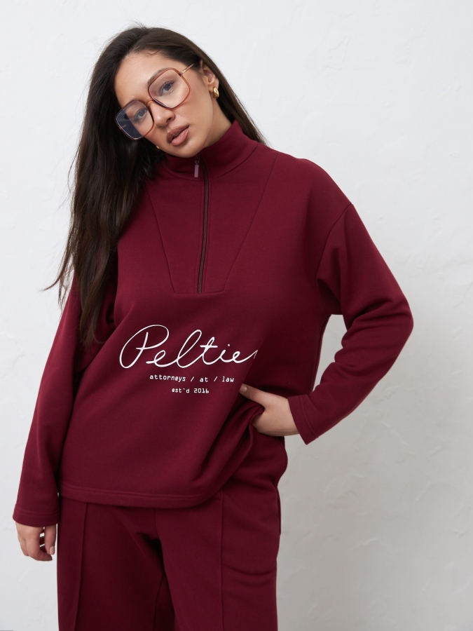 Джемпер из футера 3-х нитки с воротником стойкой на замке свободного прямого силуэта.