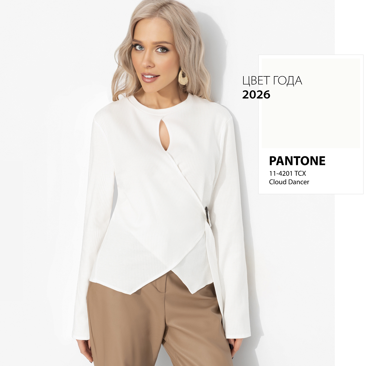 Джемпер в главном оттенке 2026 года по версии Pantone – Cloud Dancer – говорит о женственности без лишних слов. Воздушный белый транслирует окружающим твое абсолютное спокойствие и уверенность, а акцентный вырез добавляет провокации: дерзко, стильно, на ваших условиях. С брюками или юбкой легко получится образ, который покоряет с первого взгляда. Джемпер из хлопка: ткань плотная, гладкая, дышащая, эластичная, держит форму без деформаций. Полуприлегающий силуэт со спущенной линией плеча удлиняет шею. Асимметричный запах с поясом подчеркивает талию.
