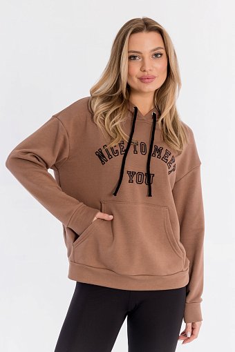 Женская толстовка из однотонного футера 3-х нитки (воздушка) в коричневом цвете.