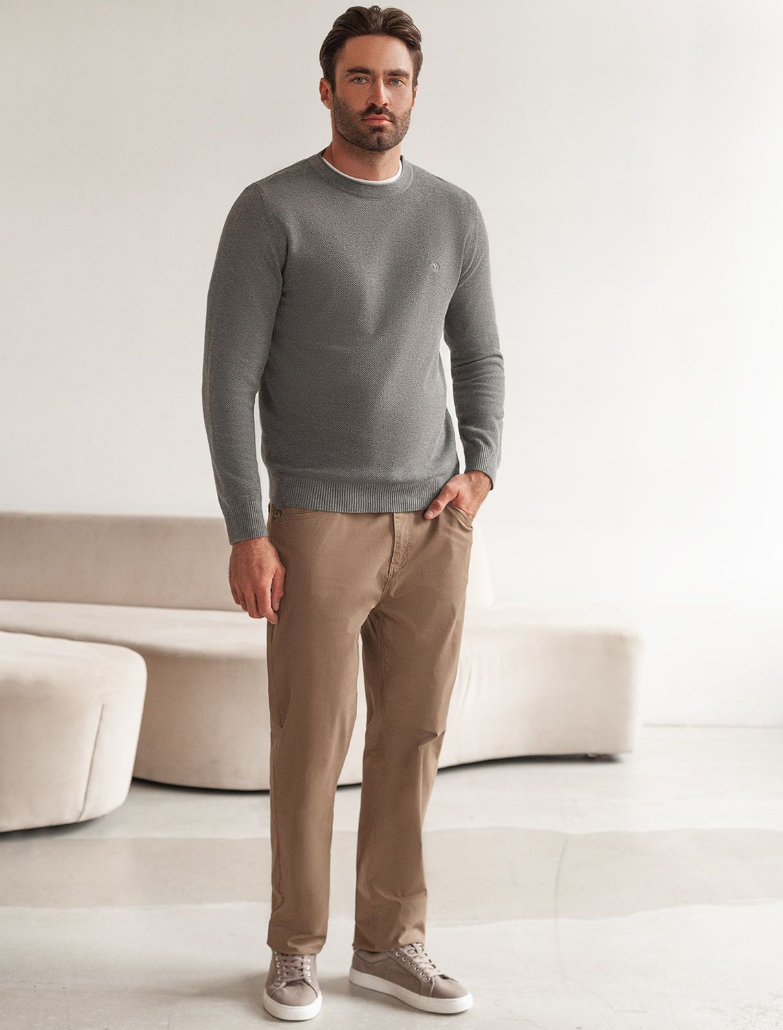 Джемпер фактурной вязки «оксфорд» выполнен из хлопковой пряжи с добавлением нейлона. Модель с круглым воротом дополнена вышитым логотипом бренда и классическим металлическим лого. Изделие гармонично впишется в образ как с брюками, так и с джинсами. Вторым слоем к контрастной футболке. Хлопковая пряжа хорошо сохраняет тепло при этом, не перегревая тело. Нейлон в составе способствует формоустойчивости. 82%Хлопок 18%ПА
