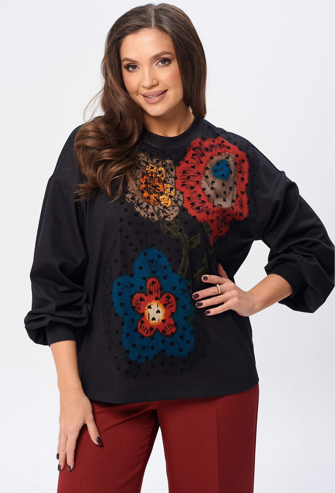 Модель: Гизарт 15345 бордо-бежевые цветы..показатьli> Рост: 164 см (девушка на фото ростом 170см) Сезон: Осень-Зима Тип ткани: Полиэстер 96%, спандекс 4%Джемпер свободного силуэта из трикотажной ткани с принтом. Рукав втачной одношовный со складками по низу и манжетой. Горловина обработана планкой. По переду поверх принта настрочена сетка с рисунком.