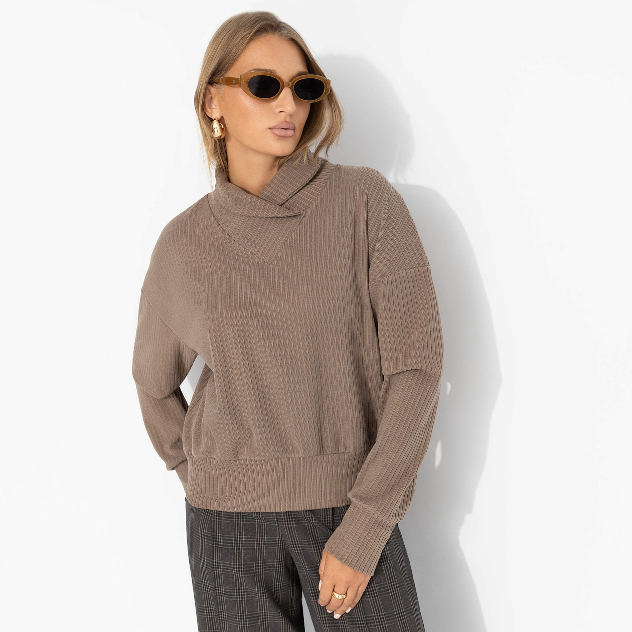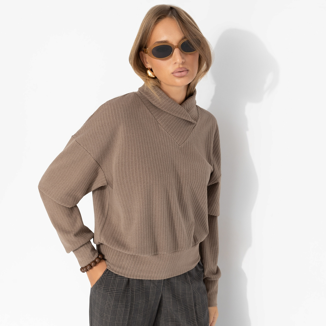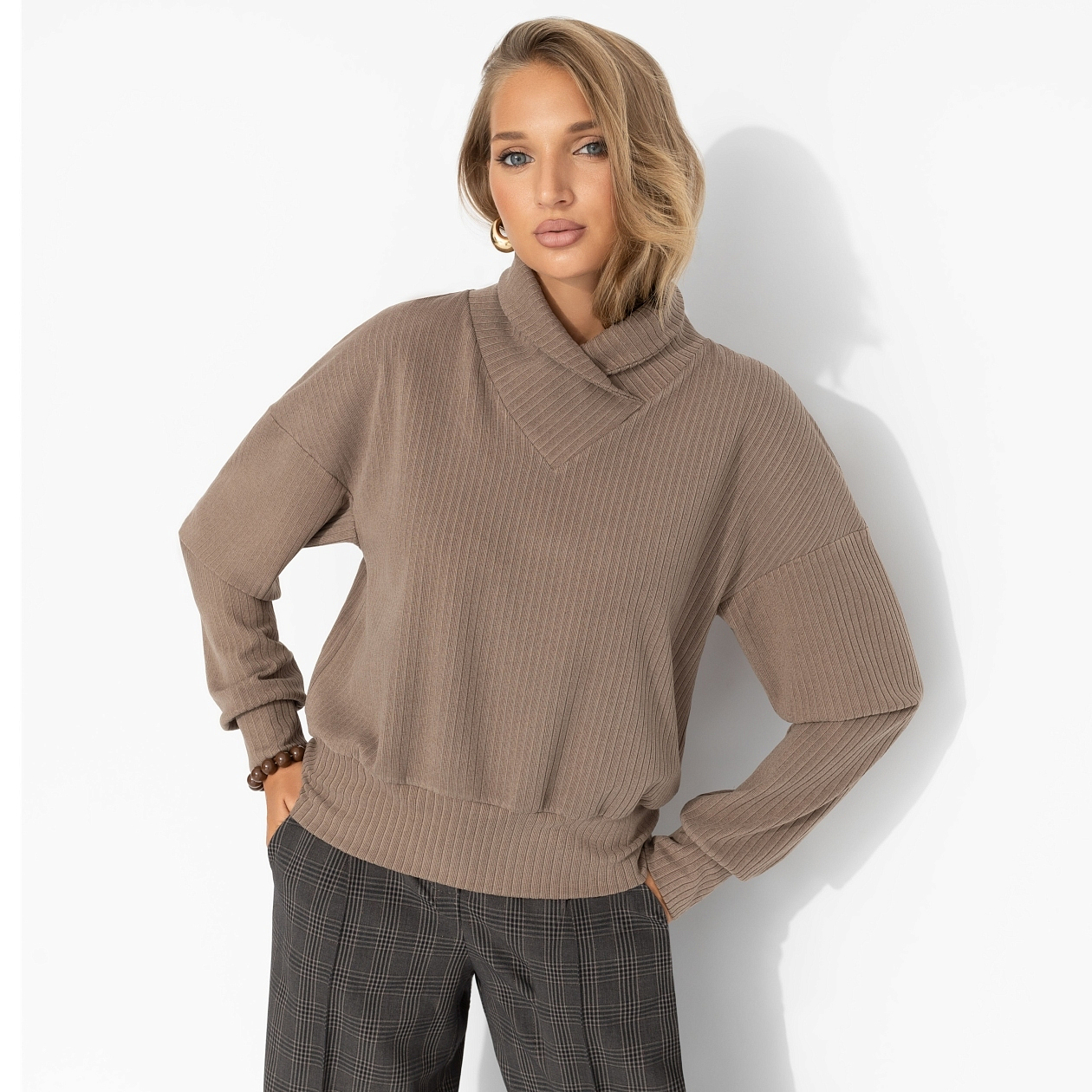 Джемпер ЧАРУТТИ стал воплощением её кипучей энергии, мягко согревая после активного дня. Невероятно тактильно приятная ткань, обволакивающая словно объятиями, делала его идеальным спутником для прогулок в парке или встреч с друзьями за чашкой кофе. Акцентный фасон идеально отражал её харизматичной характер. Друзья говорят, что джемпер сшит словно специально для вас. Джемпер с объемным воротом. Линия плеча спущена. Фактура материала – лапша.