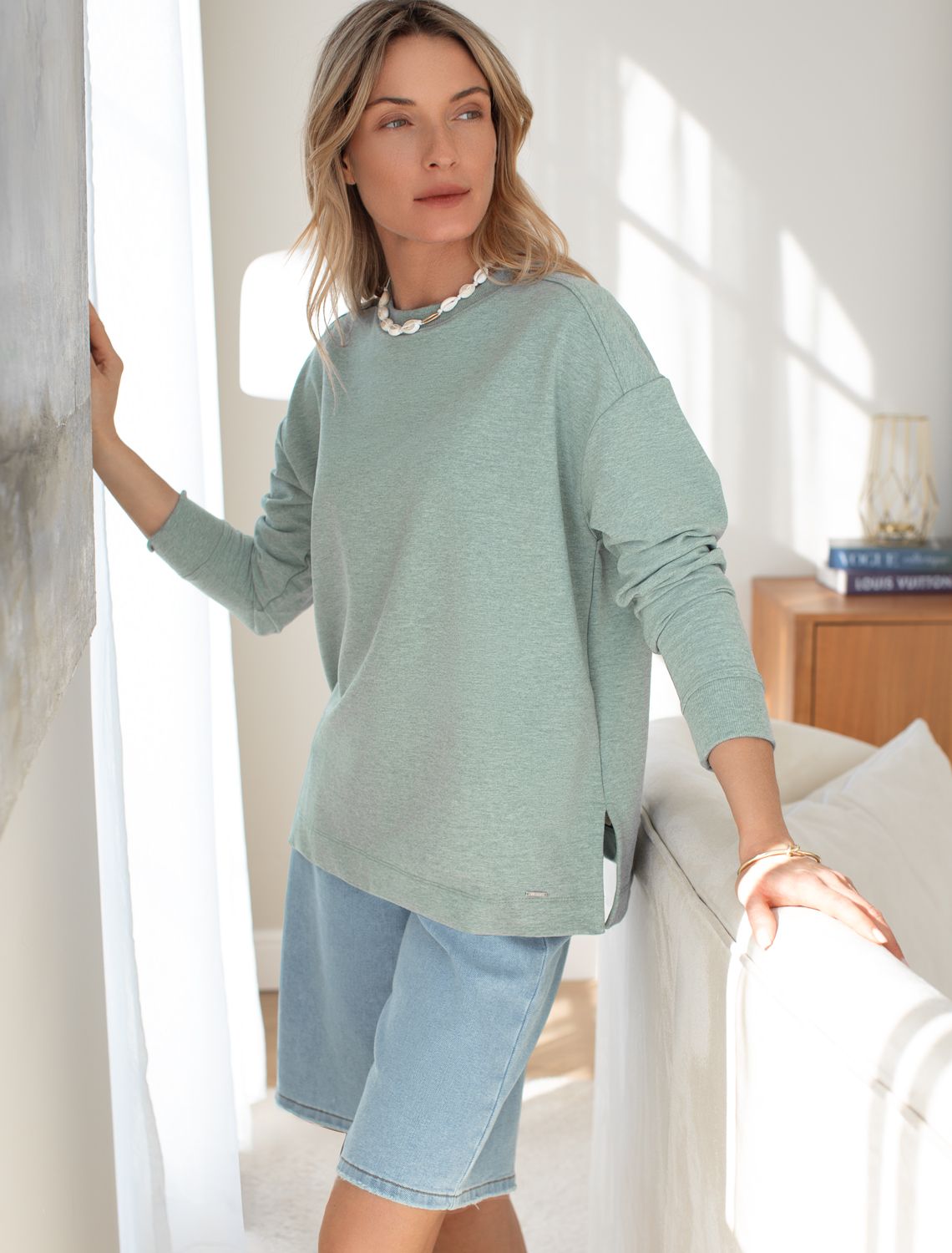 Джемпер со спущенной линией плеча выполнен из премиального хлопка. Модель дополнена разрезами по бокам. Мягкий эластичный хлопковый трикотаж гарантирует исключительный комфорт и уют дома. Идеально сочетается в костюме с шортами D48.006, брюками D44.120 и леггинсами D44.131 95%Хлопок 5%ПУ