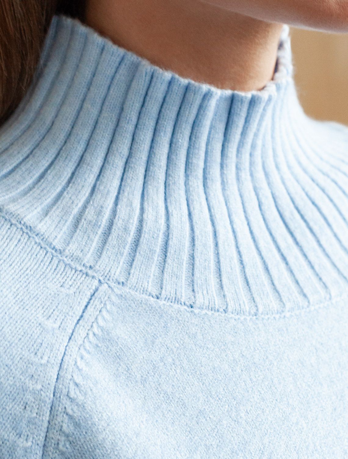 Джемпер с воротом стойка выполнен из мягкой меланжевой пряжи с кашемиром. Модель свободного силуэта с рукавом реглан будет стильно сочетается с брюками и джинсами. Мягкая пряжа очень приятная к телу, поддержит комфорт на протяжении всего дня, при этом не перегревая. Сочетается в костюме с брюками D38.013, D38.012 и юбкой D36.016