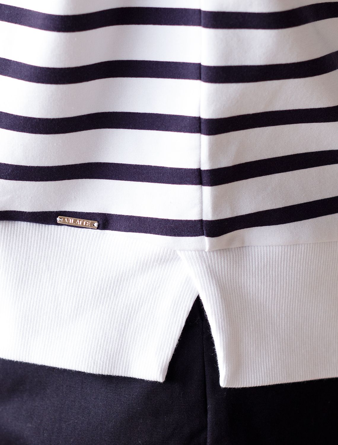 Джемпер выполнен из эластичного футера-двухнитки. Мягкий хлопковый трикотаж гарантирует абсолютный комфорт и не сковывает движений. Эластан в составе поддерживает формоустойчивость. Сочетается с любым низом коллекции из футера или денимом. В офис с классическими брюками.