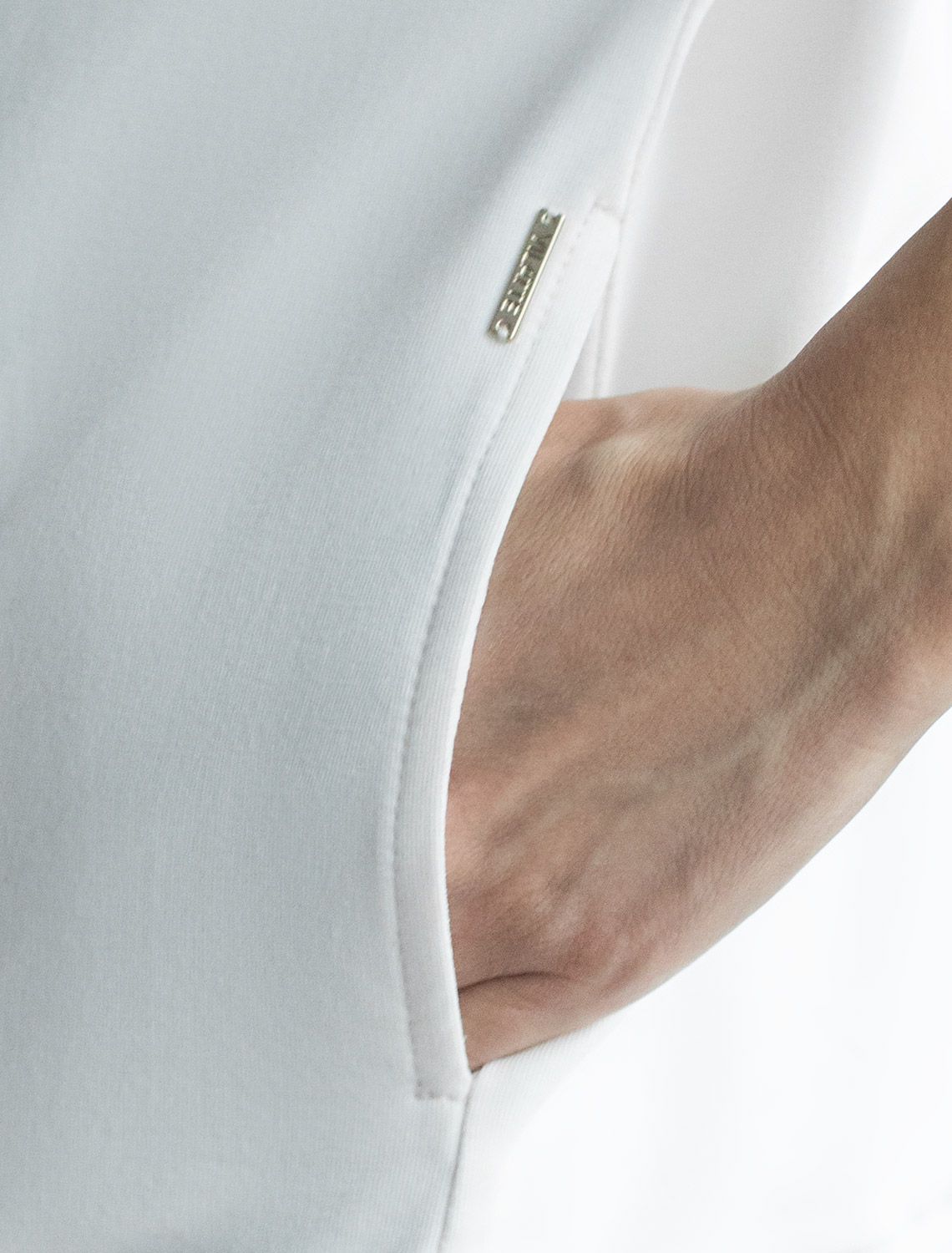 Джемпер среднего объема со спущенным плечом выполнен из футера двухнитки с эластаном. Изделие с воротом на золотистой молнии дополнено боковыми карманами. Эластичный материал гарантирует комфорт и формоустойчивость. Сочетается в костюме с брюками D44.138, D44.139 и шортами D48.008. Изделие дополнено металлическим логотипом бренда.