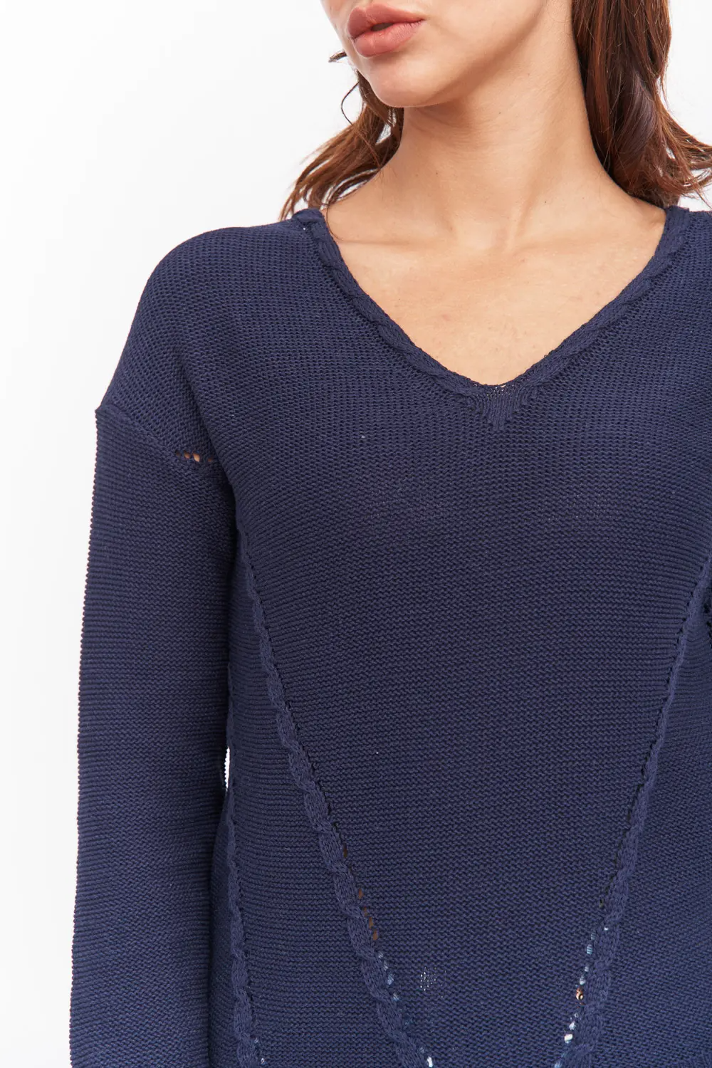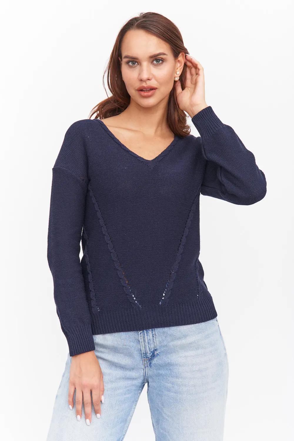 Женский трикотажный джемпер с длинным рукавом, V-образный вырез горловины, плечо спущенное, рукава втачные. джаз