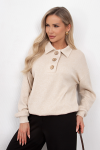 Комфортный джемпер свободного кроя из трикотажного полотна. Длинный втачной рукав со спущенным плечом присобран на манжету. Отложной воротник. Перед оформлен планкой с застежкой на петли и пуговицы. Низ на манжете.