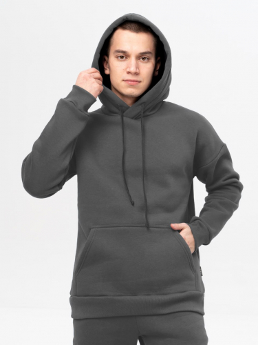 Мужское худи из мягкого хлопкового футера с начёсом имеет капюшон на регулируемом шнурке, карман «кенгуру» и широкие манжеты и пояс по низу из кашкорсе, благодаря чему модель прекрасно сохраняет тепло тела. Популярный oversize и мягкая утепленная изнанка – составляющие городского стиля и повышенного комфорта.