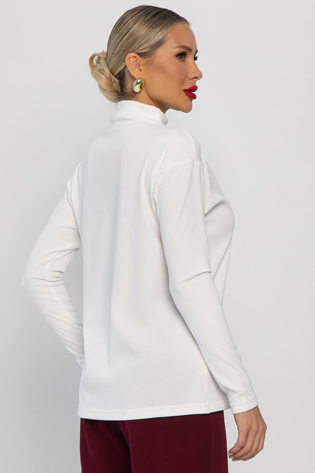 Джемпер в элегантном стиле — это отличный выбор для тех, кто ценит изысканность! Базовый молочный оттенок придает ему универсальность. Он изготовлен из мягкого трикотажного полотна «лапша», что делает его идеальным дополнением к строгим деловым костюмам.
