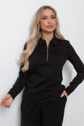 Комфортный джемпер полуприлегающего силуэта из трикотажного полотна. Длинный втачной рукав. Отложной воротник. Перед оформлен планкой с застежкой на петли и пуговицы. Низ ровный, без разрезов.