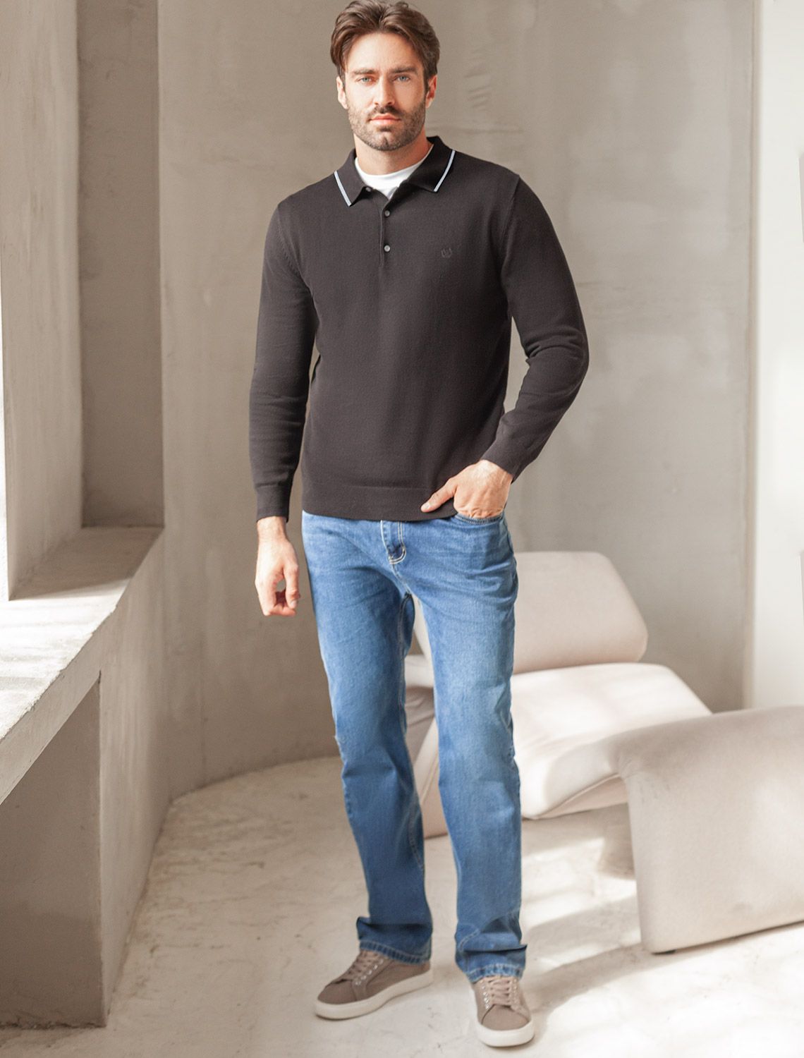 Джемпер-поло выполнен из хлопковой пряжи с добавлением нейлона. Модель гладкой вязки дополнена вышитым логотипом бренда и классическим металлическим лого. Фурнитура темный никель. Изделие гармонично впишется в образ как с брюками, так и с джинсами. Хлопковая пряжа хорошо сохраняет тепло при этом, не перегревая тело. Нейлон в составе способствует формоустойчивости. 82%Хлопок 18%ПА