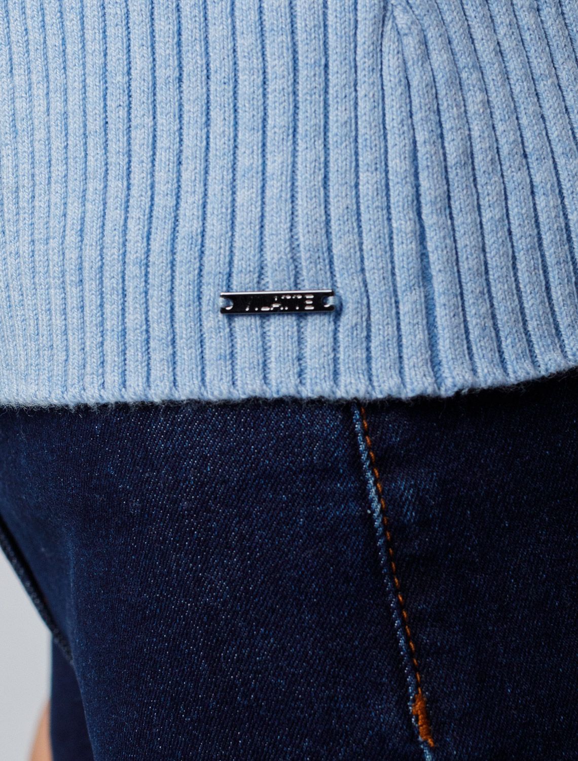 Джемпер-поло тонкой вязки выполнен из хлопка с добавлением кашемира. Модель с воротом как у поло дополнена застежкой на молнию и металлическим логотипом бренда. Мягкая и очень приятная пряжа в рубчик совершенно не колется, сохраняет тепло при этом не перегревая, гарантируя безупречный комфорт.