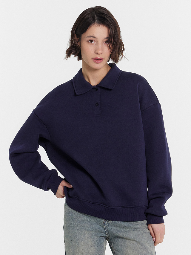 Джемпер поло свободного силуэта с воротником и застежкой на пуговицы выполнен из высококачественного трикотажного футера с мягким подчесом, что гарантирует вам максимальный комфорт и тепло. Спущенное плечо и углубленная пройма придают изделию особый шарм и удобство в ношении. Длинные рукава с эластичными манжетами из рибаны создают аккуратный и стильный образ. Такой джемпер идеально подходит для различных ситуаций. Вы можете носить его на работу, сочетая с классическими брюками или юбкой, создавая элегантный деловой стиль. Для повседневных выходов он станет отличным дополнением к джинсам или леггинсам, обеспечивая вам комфорт и стиль в течение всего дня. А в прохладные вечера он согреет вас и добавит нотку уюта в образ. Откройте для себя новый уровень комфорта и стиля с женским джемпером поло от Mark Formelle!