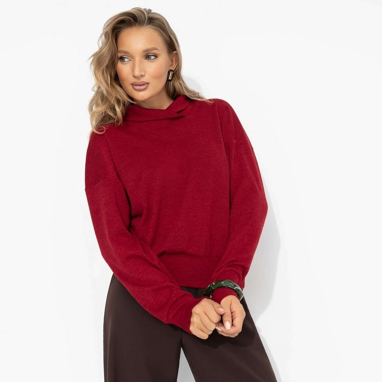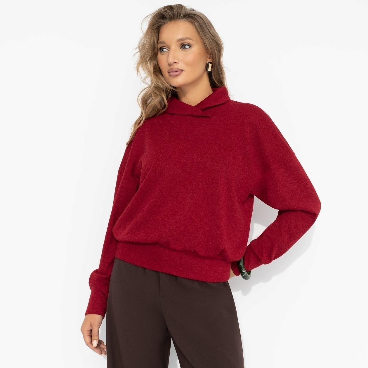 Глубокий красный цвет – импульс, который задаёт настроение всему дню. Мягкий трикотаж с ангорой окутывает теплом и дарит чувство уверенности. Действуй ярко! Джемпер из трикотажа с добавлением ангоры. Низ изделия оформлен нетугой резинкой.