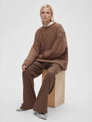 Изделия изготавливаются на нашей фабрике в России. Процесс вязки происходит на японской плосковязальной машине Shima Seiki. Все элементы изделия соединены вручную на кеттельном оборудовании. Перед отправкой каждое изделие тщательно стирается, и проводится дополнительный контроль качества.