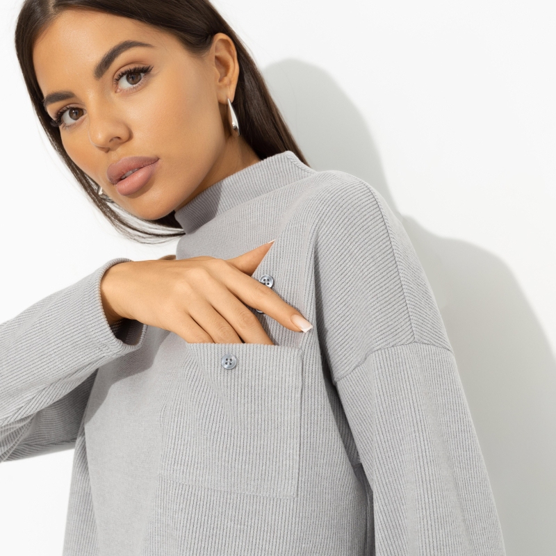 Этот женский джемпер больших размеров с напуском привносит в ваш повседневный образ нотку изысканности. Благодаря спущенной линии плеча и карману на передней части, он выглядит современно и стильно. Миниатюрные пуговицы добавляют изюминку, делая этот джемпер не только практичным, но и модным. Представьте, как приятно будет носить этот джемпер женский оверсайз в прохладные дни, наслаждаясь его теплом и мягкостью. Оптом приобретая этот джемпер, вы получаете возможность предложить своим клиентам продукт, который станет их любимым элементом гардероба.