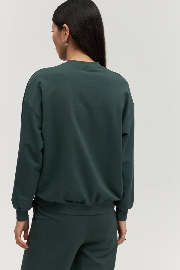 Свитшот из футера 2-х нитки с авторским принтом. Модель свободного силуэта со спущенной линией плеча и манжетами из основного материала. Боковые разрезы.