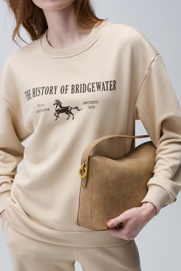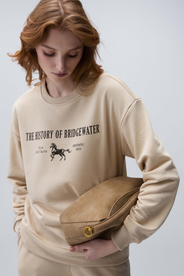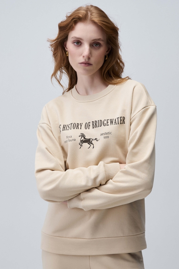 Свитшот из футера 3-х нитки с авторским принтом. Модель свободного силуэта со спущенной линией плеча и манжетами из основного материала. Боковые разрезы.