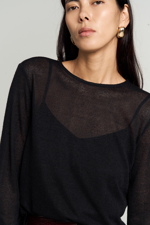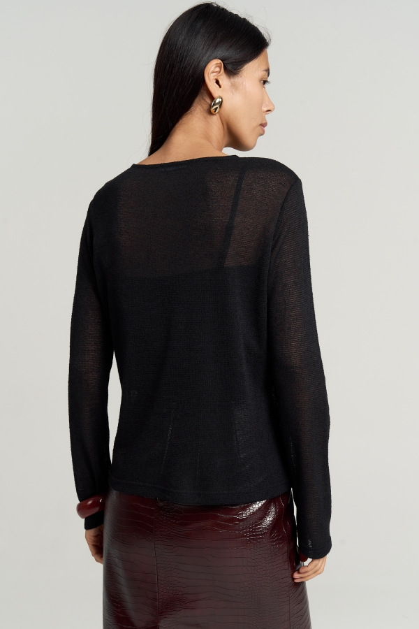 Комфортный джемпер из полупрозрачного трикотажного полотна.