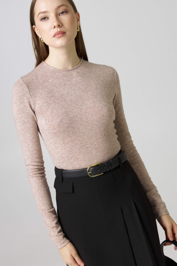 Базовый лонгслив из мягкого трикотажа. Модель прилегающего силуэта. Втачной рукав. Круглый вырез.