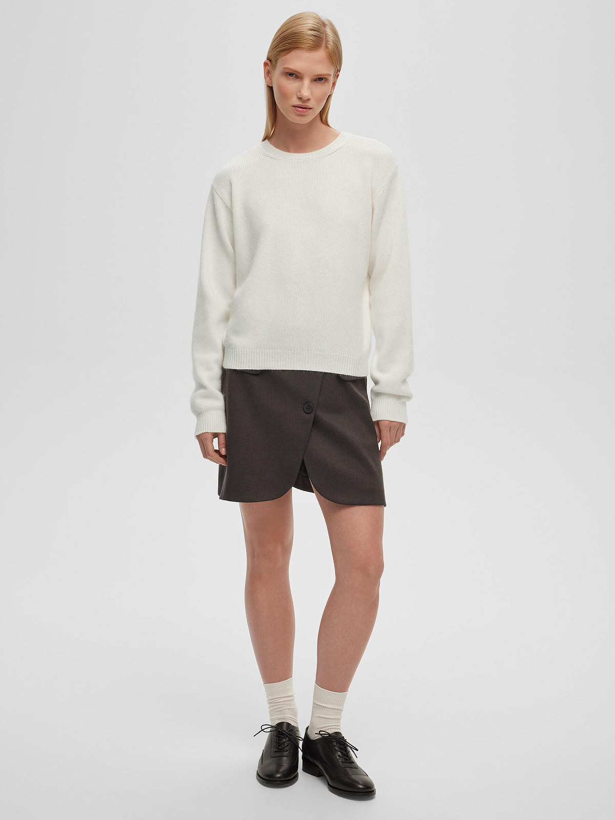 Джемпер свободного кроя с ангорой, белый