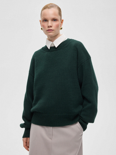 Джемпер свободного кроя, темно-зеленый
