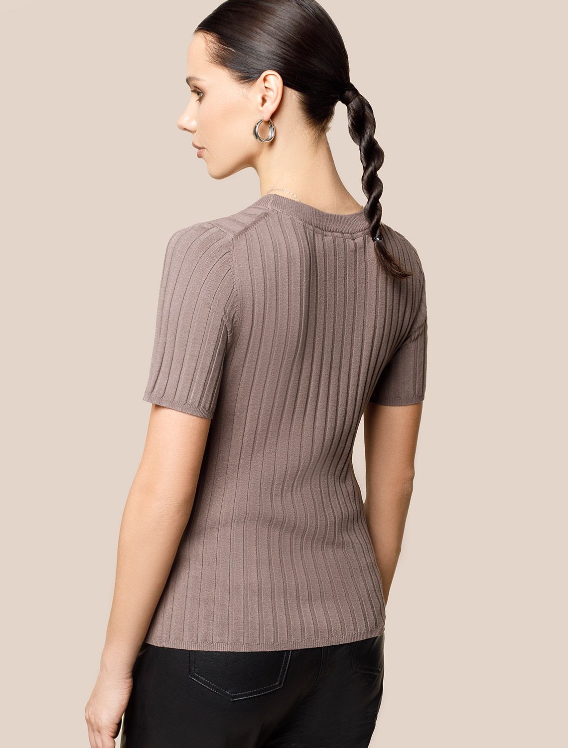 Джемпер тонкой вязки из вискозы с нейлоном. Модель с круглым вырезом прилегающего силуэта. Мягкая очень приятная к коже пряжа хорошо держит форму и гарантирует комфорт во время носки в течение всего дня. Изделие дополнено фирменным металлическим логотипом бренда. 83%Вис 17%ПА