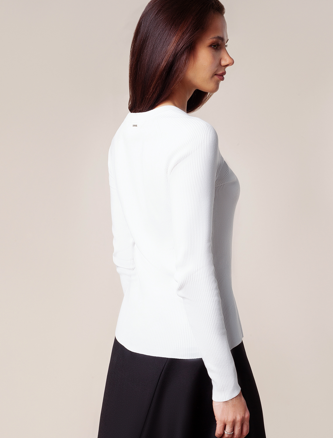 Джемпер тонкой вязки в рубчик выполнен из мягкой пряжи на основе вискозы. Изделие почти не ощущается на теле и поддерживает ощущение комфорта в течение всего дня. Лаконичная модель с легкостью впишется в любой гардероб. В теплую погоду, как самостоятельный верх, в прохладную в комплекте с жакетом. 83%Вис 17%ПА