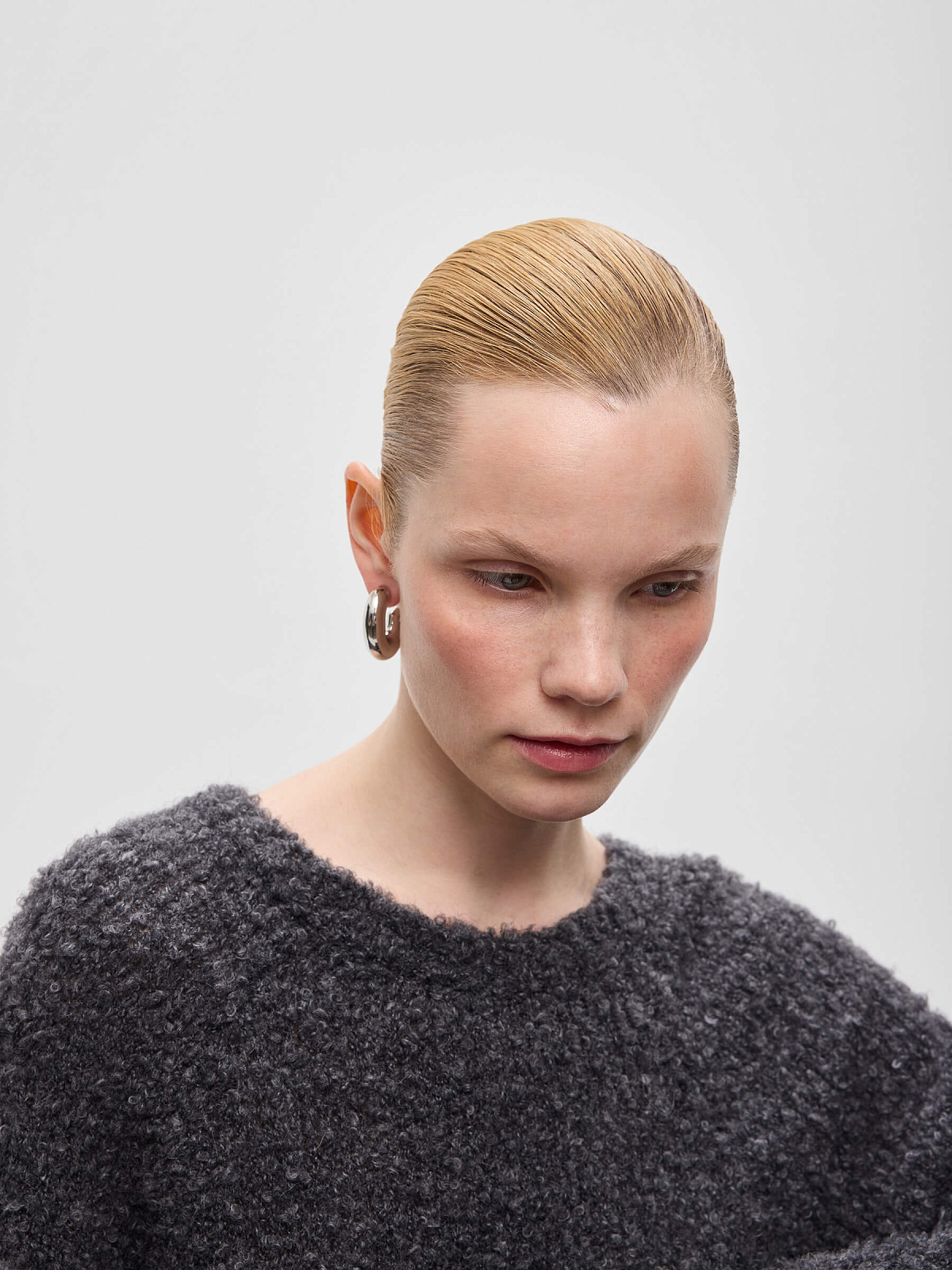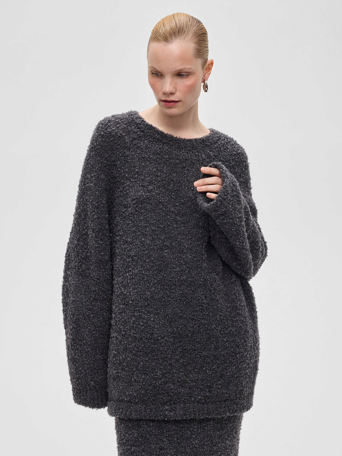 Джемпер удлиненный букле из альпаки и шерсти, серый