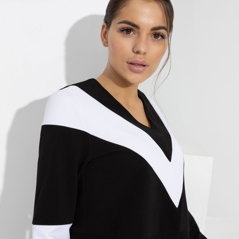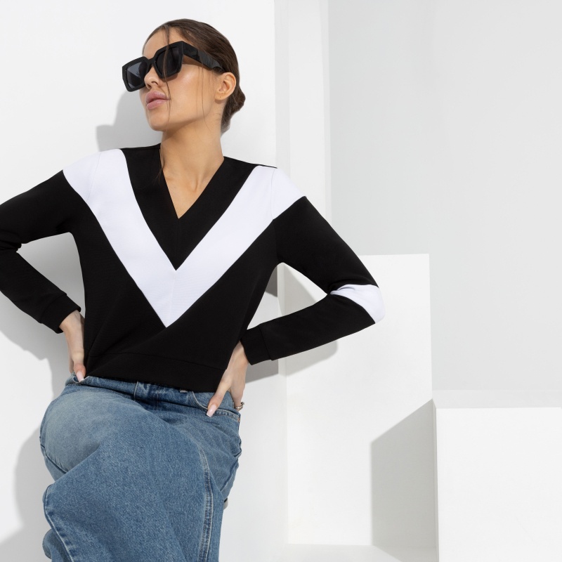 Стильный джемпер с мощной энергетикой! Контрастное сочетание цветов уравновесит V-образный вырез, который визуально вытянет шею и придаст силуэту изящности!