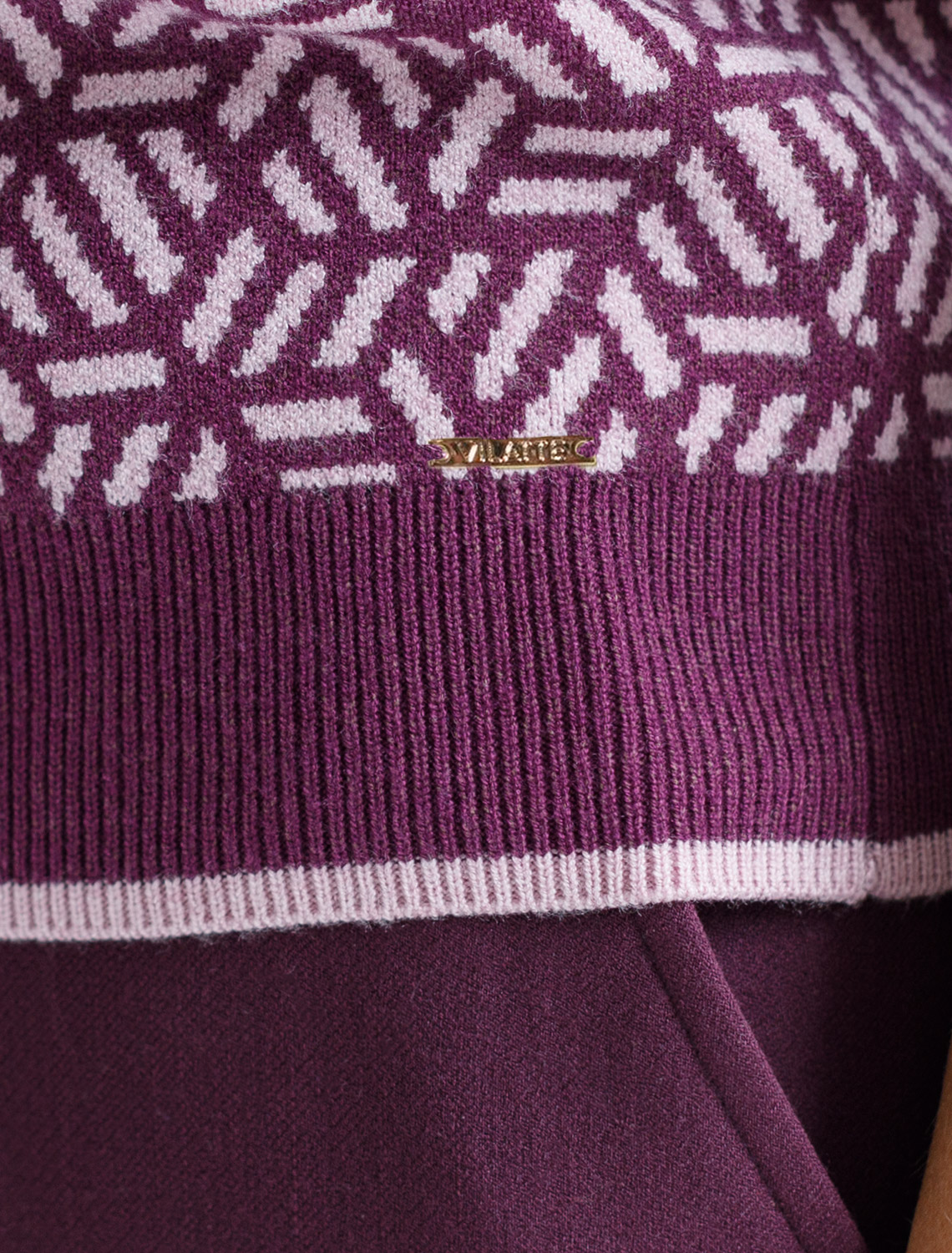 Джемпер жаккардовой вязки выполнено из нежной пряжи на основе вискозы с добавлением кашемира. Модель прямого силуэта с застежкой планкой как у поло. Фигурные золотистые пуговицы вносят изысканности и роскоши. Изделие приятно ощущается на теле и поддерживает комфортный микроклимат. Сочетается в комплекте total-look с жакетом D31.150 50%Вис 20%ПА 20%ПЭ 10%Кашемир