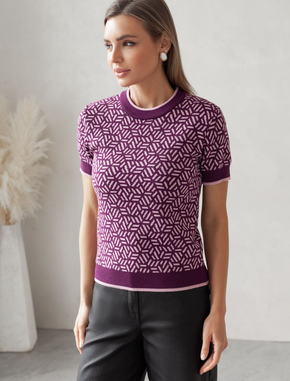 Джемпер жаккардовой вязки выполнено из нежной пряжи на основе вискозы с добавлением кашемира. Лаконичная модель с круглым воротом. Сочетается в комплекте total-look с жакетом D31.150 Изделие приятно ощущается на теле и поддерживает комфортный микроклимат. 50%Вис 20%ПА 20%ПЭ 10%Кашемир