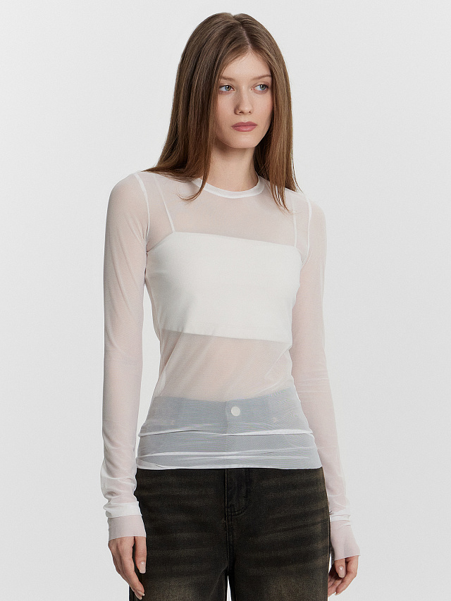 Белый женский джемпер из сетки — дерзкий и изысканный вариант для создания актуальных образов. Прилегающий силуэт из эластичного сетчатого материала мягко повторяет контуры фигуры, играя на контрасте полупрозрачности и утонченной элегантности. Круглая горловина и длинные рукава формируют лаконичные линии, а специально оставленные необработанные срезы по низу и на манжетах придают модели современный шарм.