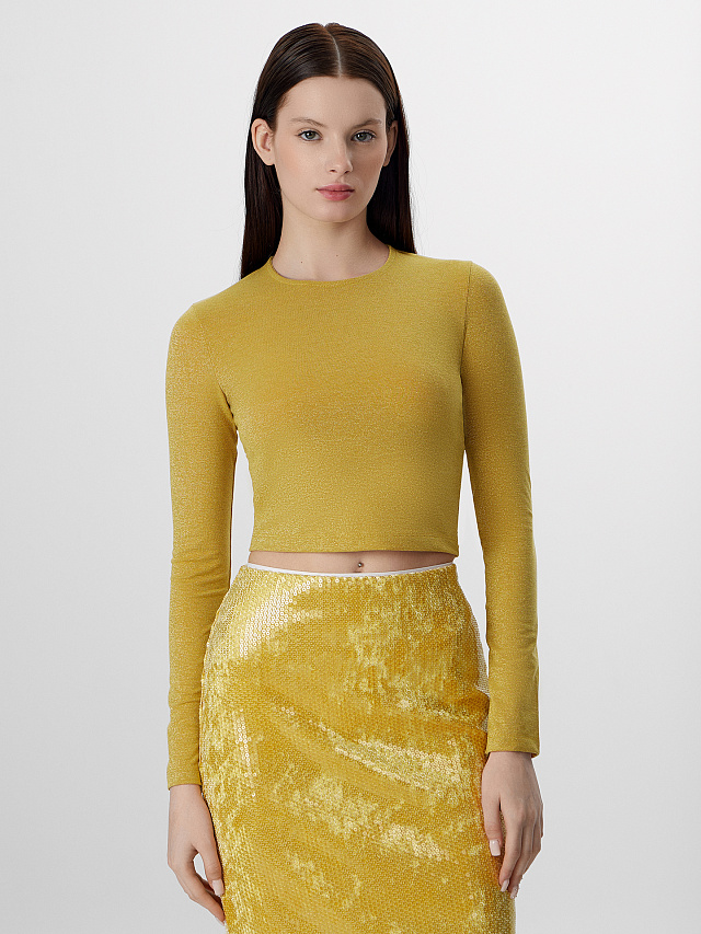 Джемпер женский прилегающего силуэта из трикотажного полотна с люрексом.