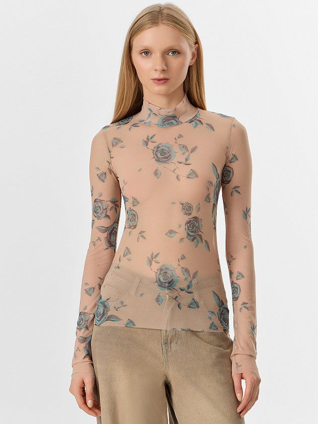 Джемпер женский бежевый из сетки